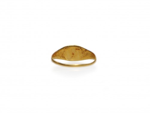 Plain gold hoop set with a glass intaglio engraved with a mask.