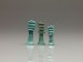 Group of three (3) blue-green glazed faience composition amulets of the Djed pillar, the backbone of Osiris symbolizing strength and stability, carved in the shape of a tall shaft with four horizontal bars, on the back side of the pillar stands a taller column, pierced for suspension. The Spell 155 of the Book of the Dead, refers to its function as follows "I am the magical protection of Osiris". It’s a magical spell, to be recited over a djed pillar, placed over the throat of the deceased on the day of burial.