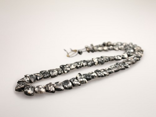 Composed of crescent-shaped diorite beads, graduated in size, strung with a modern S-hook closure.