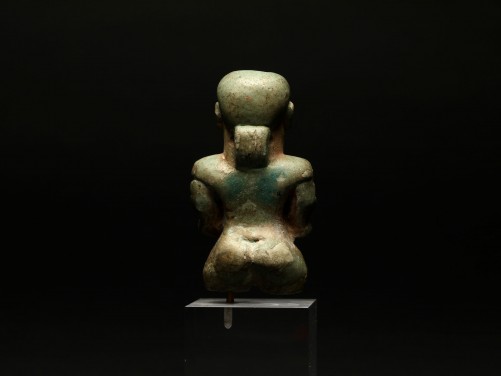 Depicted as a naked dwarf figure with large head and short legs, the arms slightly bent at the elbows and held at his sides, a suspension loop at the back of the neck.