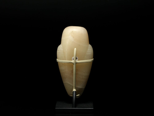A rare alabaster human-headed funerary amulet, conical in form, wearing a tripartite wig, representing the heart.