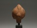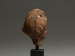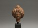 The well-modeled woman's head with an elaborate 'melon' headdress drawn back into a bun held in shape by a vertical plait, piercing to ears and one at top of the head, with white pigment remains. Mounted